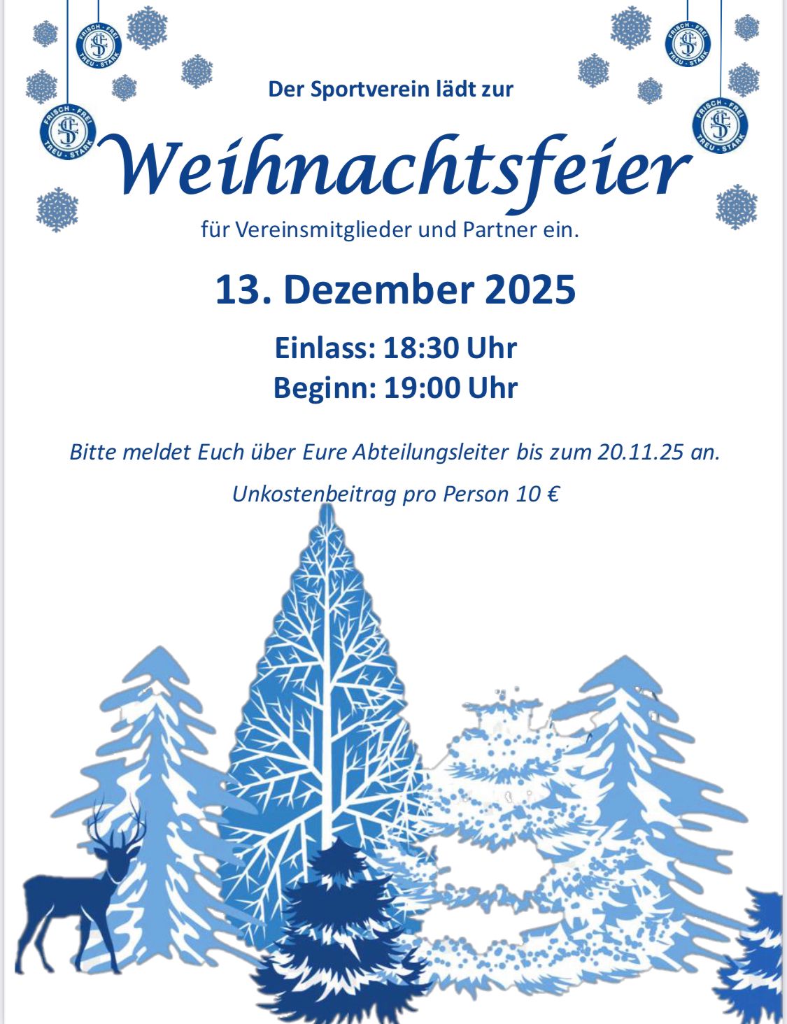 Unsere gemeinsamen Weihnachtsfeier findet wie immer in der Vereinsgastätte "Schilfhütte" statt.