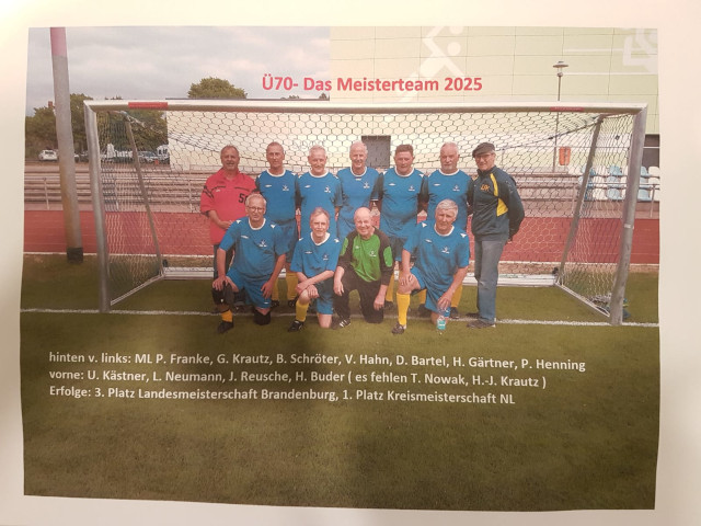 Den Gesamtsieg und damit den Kreismeistertitel der Ü70 des Jahres 2025 sicherte sich die Spielgemeinschaft Laubsdorf/Frauendorf/BW Spremberg mit drei torlosen Unentschieden. Die Grundlage für den Meistertitel wurde mit dem Turniersieg in Schorbus gelegt, das punktgleich, aber dank einer besseren Tordifferenz, vor dem Gastgeber gewonnen wurde. Im Heimturnier in Laubsdorf wurden alle Spiele gewonnen, damit ging unsere Ü70 als klarer Anwärter auf den Kreismeistertitel 2025 ins Turnier!